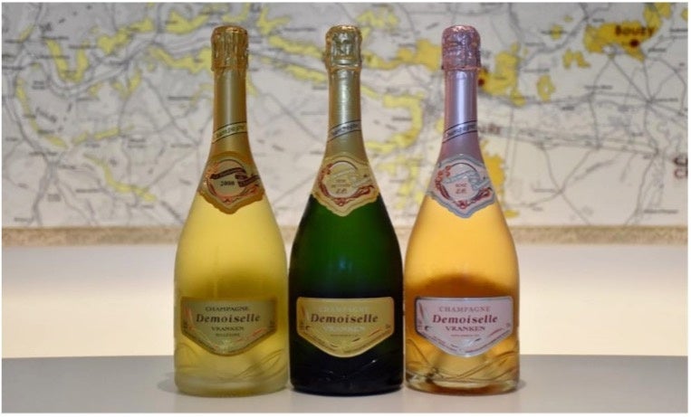 世界87ヶ国で流通し欧州最大のワイン生産者の一つであるヴランケン・ポメリー・モノポールグループが、「エレガンスとフェミニン」をコンセプトに自社のオリジナルプレミアムブランドとして開発した「ドゥモアゼル」。1985年からリリースしているプレミアムブランドで、プルミエ・クリュ(一級)以上の畑から厳選されたシャルドネが、やわらかでエレガントな味わいをもたらします。ドゥモアゼルとはフランス語で “お嬢さん” の他に “トンボ” という意味もあり、 このブランドネームは、ランスのレ・ドゥモアゼル地区にあるカステーニュ城の庭園を飛びかうトンボに由来しています。