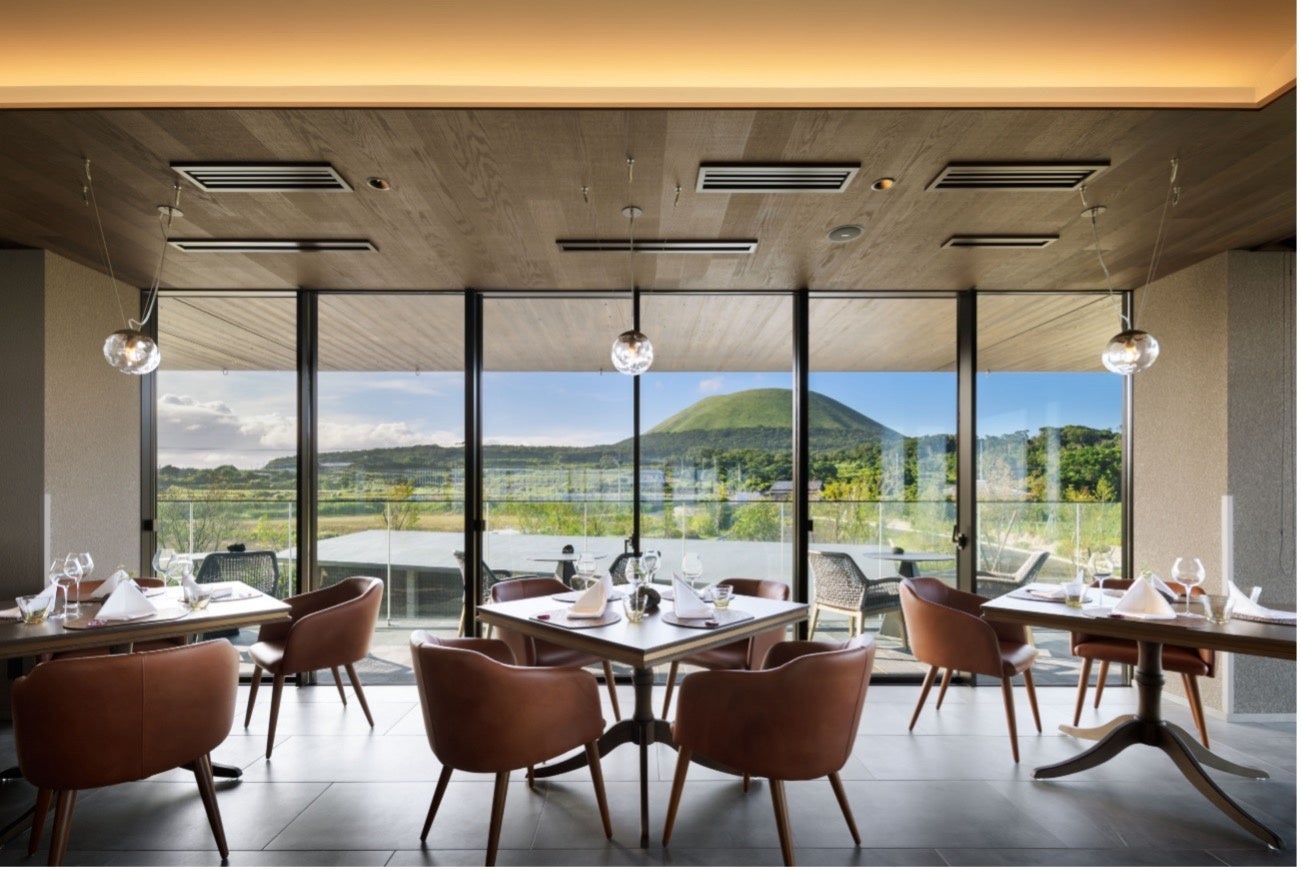 ダイニングでは、五島のシンボル「鬼岳」がインテリアの一部となり、”光” が寄り添う空間となっています。