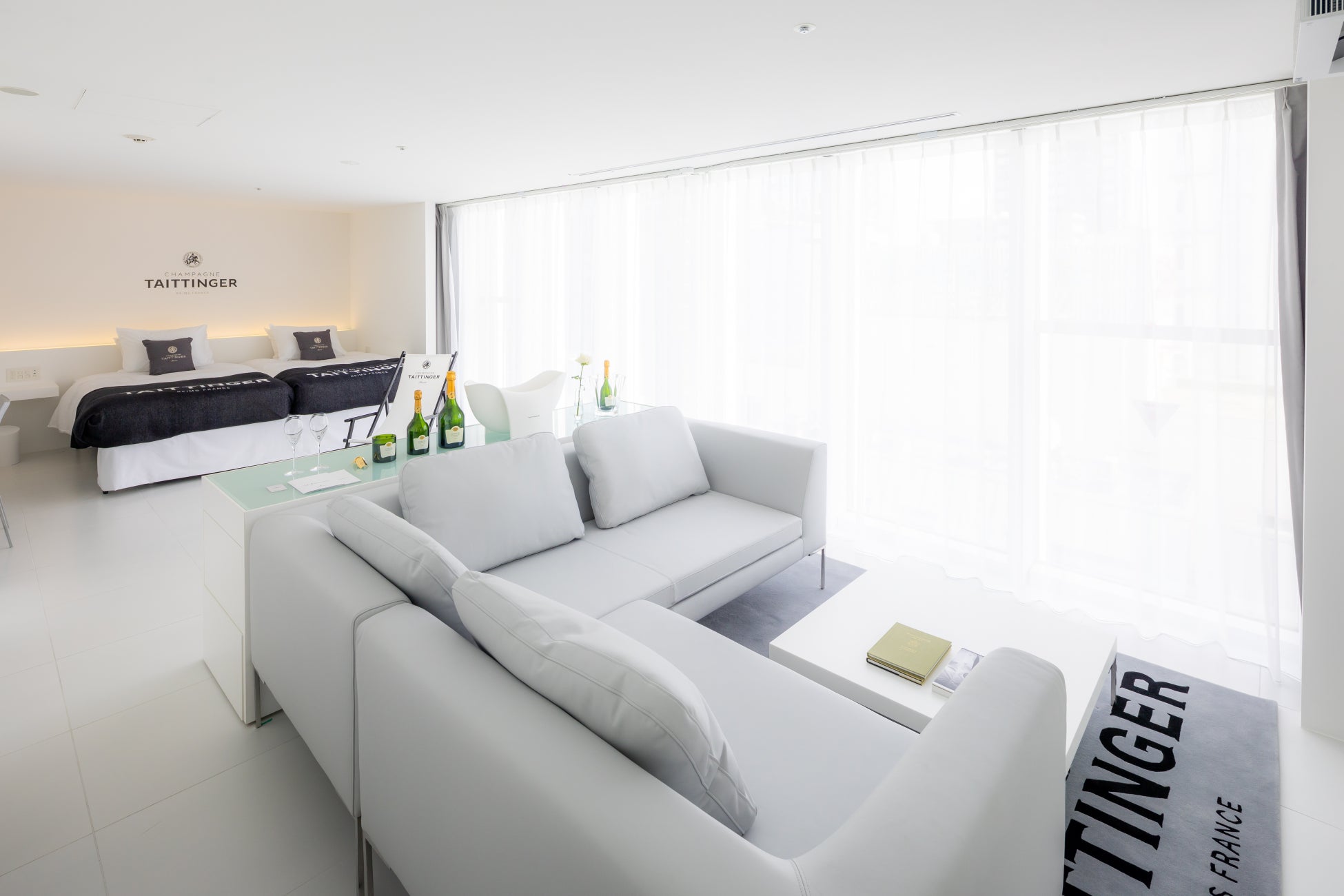 5 ⽉ 1 ⽇(水)~31 ⽇(金)の期間中は、ホテル 11 階の「テタンジェルーム」にご宿泊のお客様全員に、テタンジェオリジナルのカフスとスカーフをプレゼント。また、5 ⽉ 12 ⽇(⽇)の母の⽇にちなんで、大切なお母様に⽇頃の感謝を伝える特別な宿泊プランを期間限定でご用意するほか、5 ⽉ 19 ⽇(⽇)に は ホテル内の鮨レストラン「AWA SUSHI」にてメゾンのブランドアンバサダーを務めるフォレみどり氏をお招きしたインポーターディナーを開催。