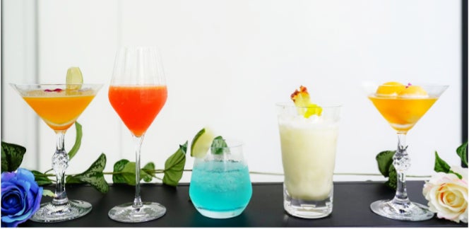 7月限定で、清涼感あふれるカクテルとモクテル(ノンアルコールカクテル)を計5種類ご用意いたします。夏の暑い時期にぴったりな色鮮やかなラインナップをぜひお愉しみください。