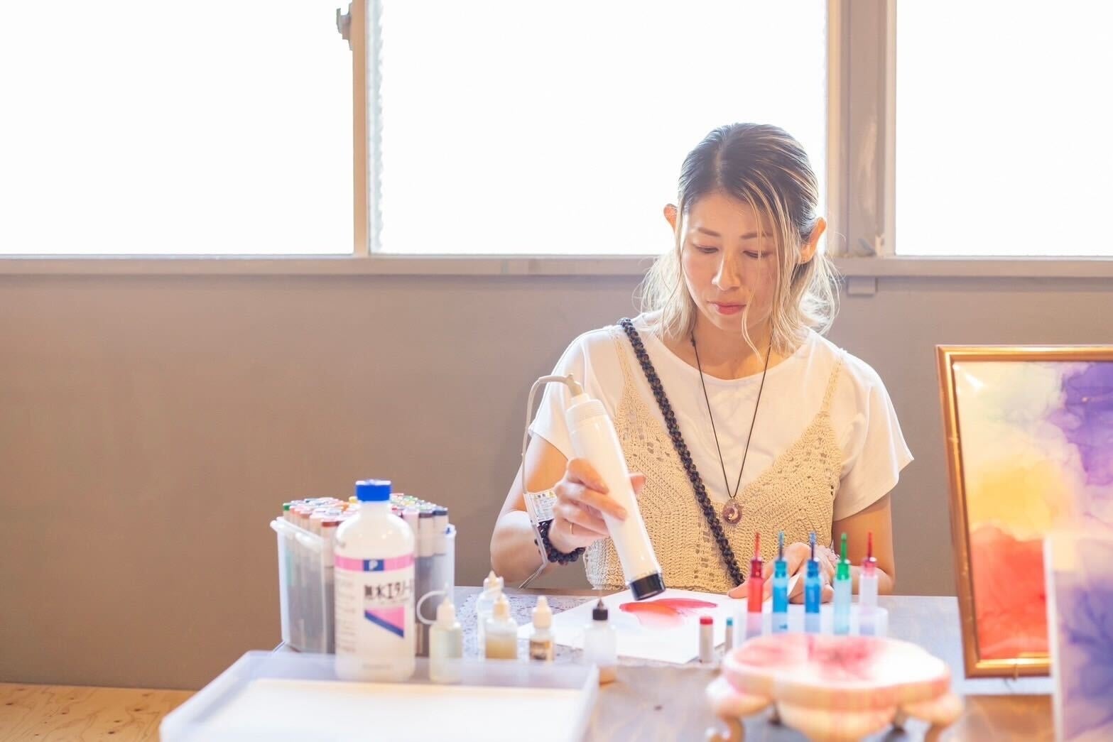 5~6月は色の広がりや混ざり合いなど色彩の美しさを楽しむ「アルコールインクアート」、6~7月は立体感のある絵の具の凸凹や質感を堪能する「テクスチャーアート」の体験をご用意しております。