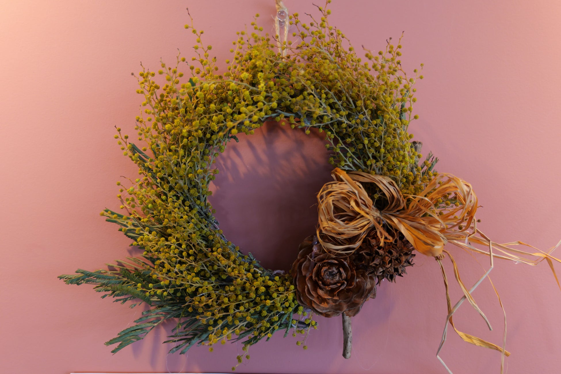 3月に開催した「ミモザリースづくり ワークショップ」の様子