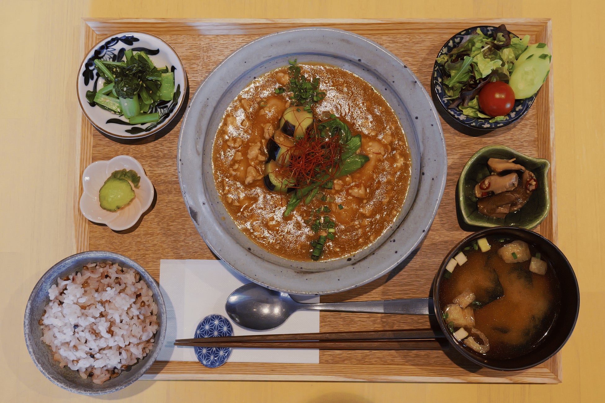 岡山県産備前味噌を使用した麻婆ソースで仕上げた、濃厚な旨味と程よい辛みを合わせて楽しめる豆腐ステーキです。
