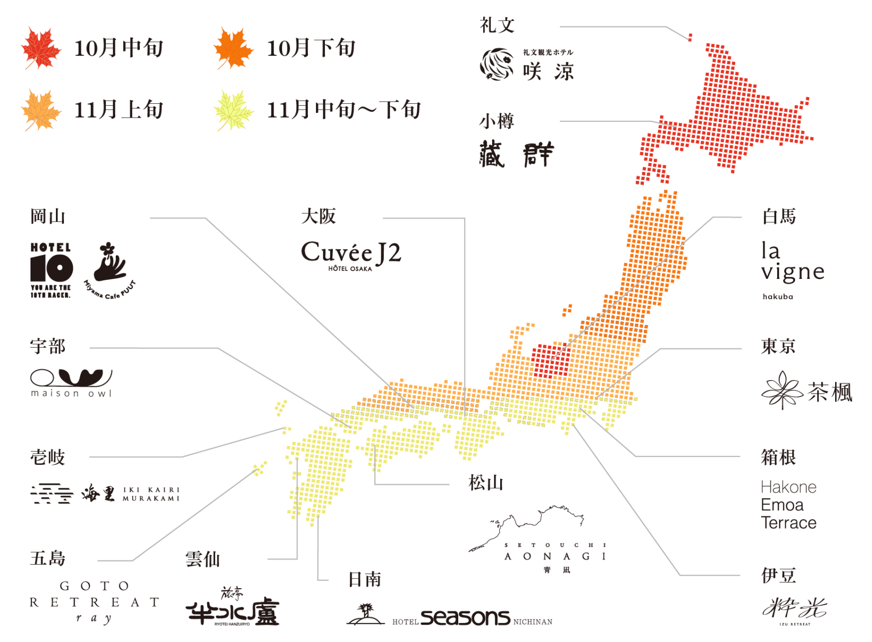 日本各地に点在する温故知新ホテルは、それぞれが個性豊かな秋を演出します。