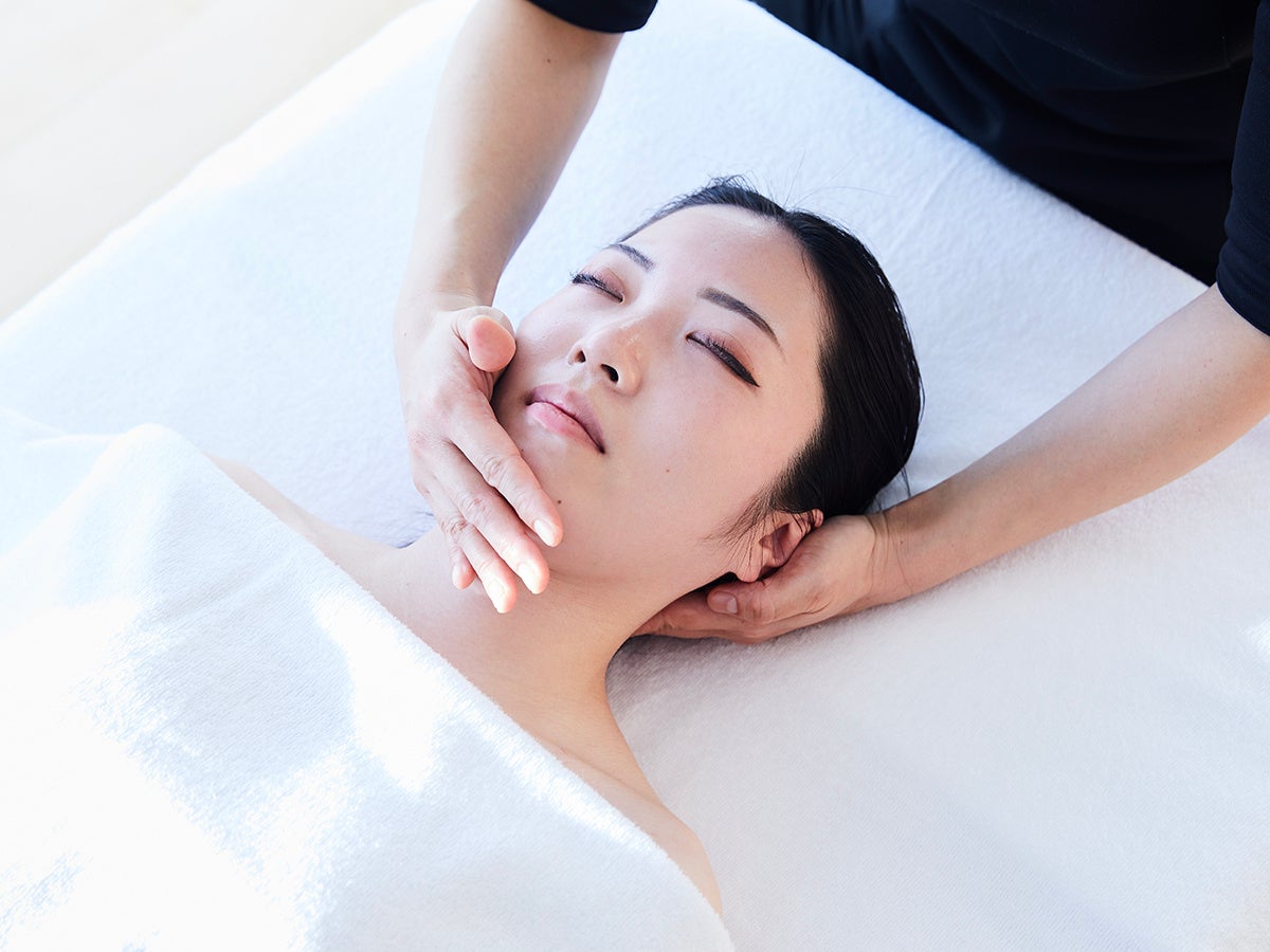 冬の乾燥した肌を潤す特別トリートメント。温かなフットバスで足先をほぐし、保湿バームで背中をケア。瀬戸内レモンの香るクレンジングとオールハンドの手技で、首肩を緩めながら肌に深い潤いを与えます。