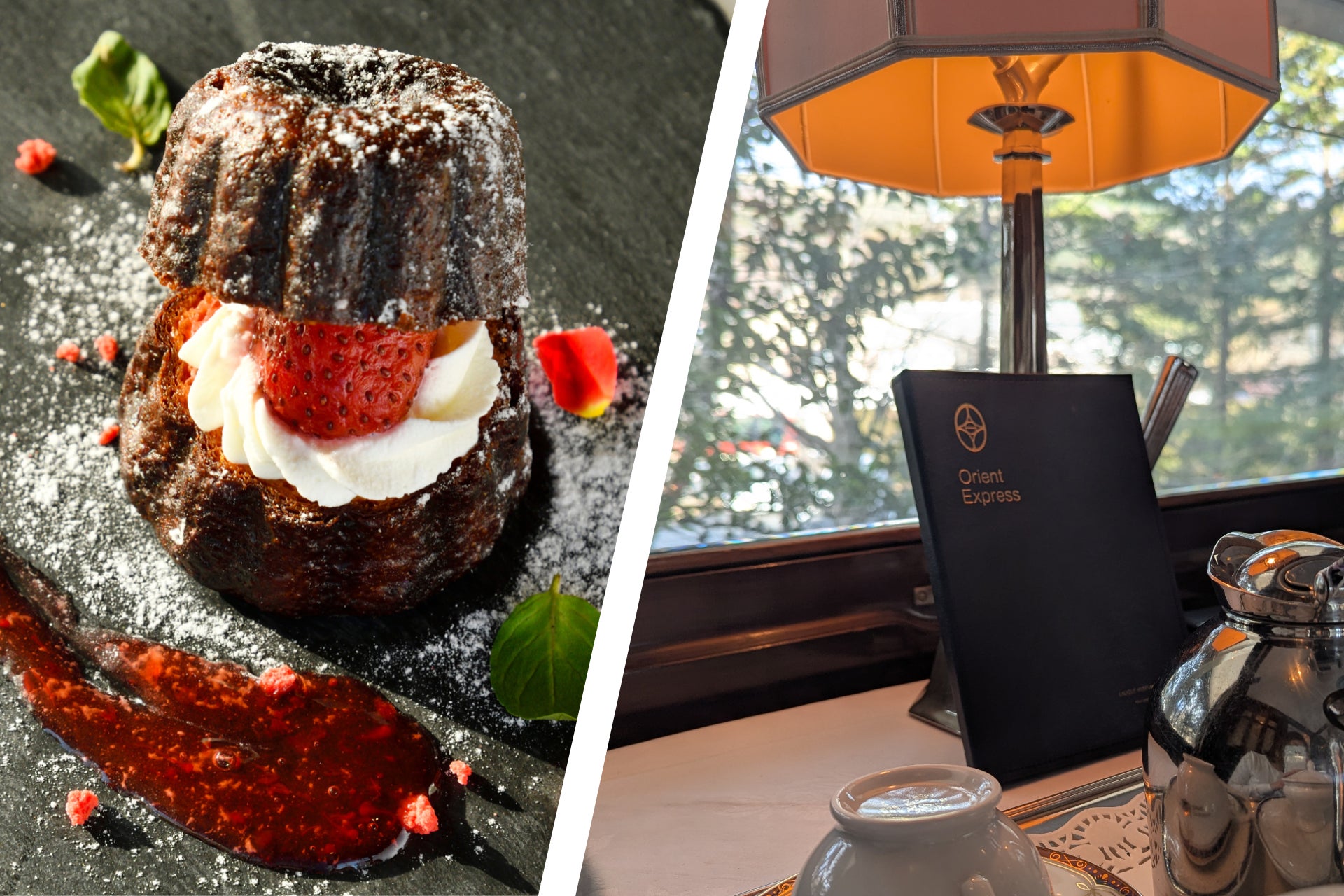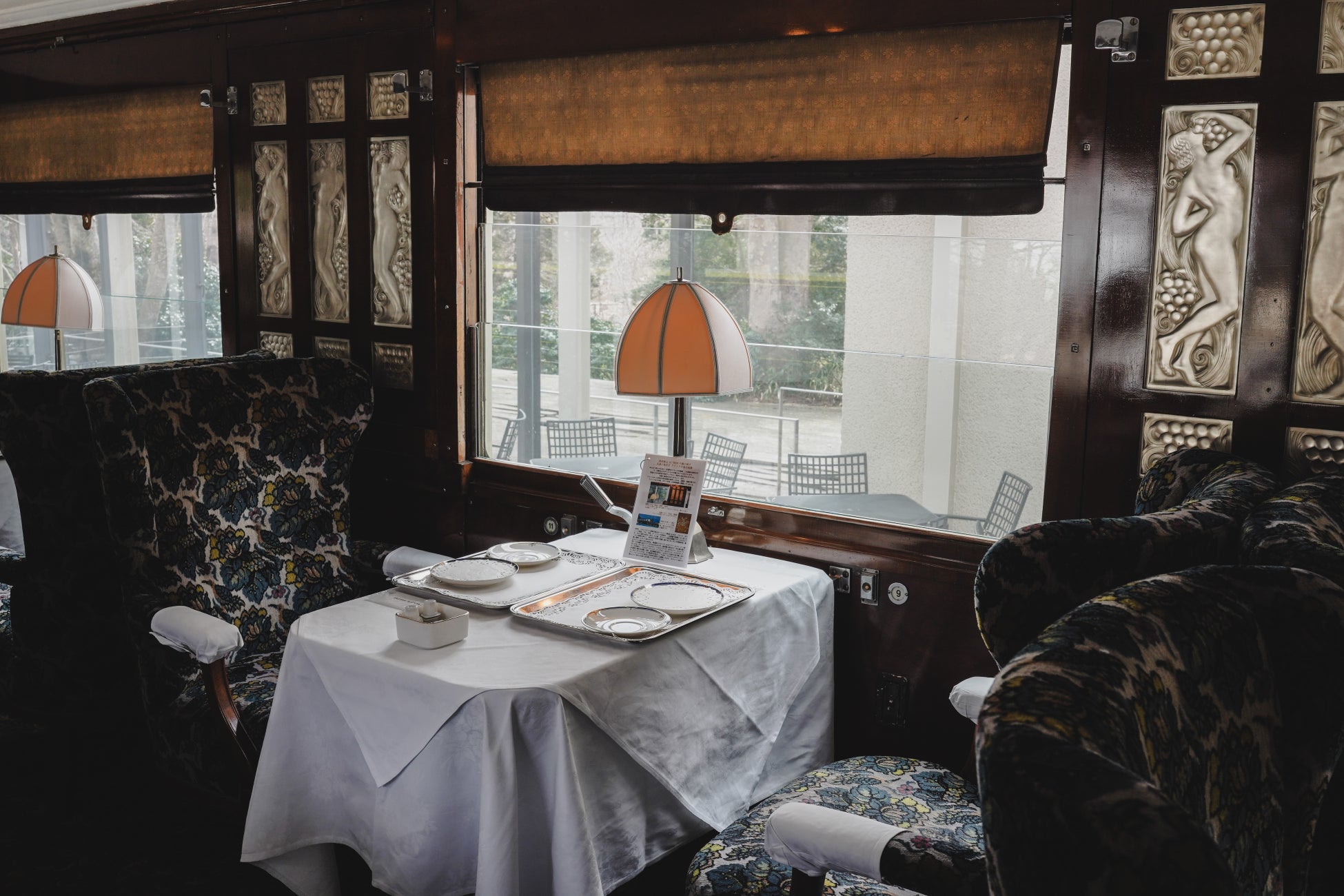 オリエント急行の非日常な空間にて特別なデザートと、紅茶のセットをお召し上がりいただけます。