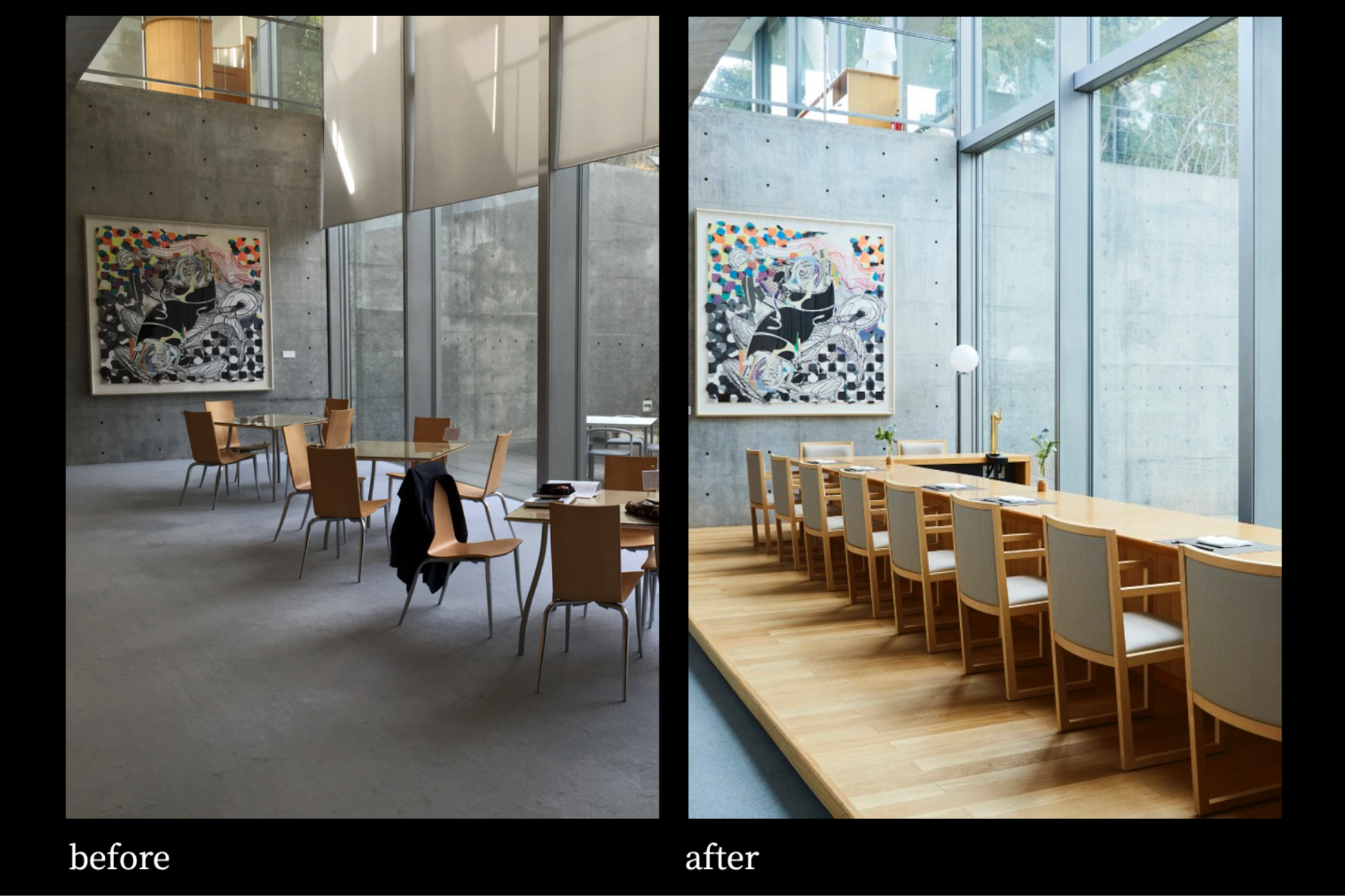 大王製紙の別荘として安藤忠雄氏が設計した建物ですが、長く活用されずに残されていました。「壊すか、売却か、新たな価値を見出すか」という選択肢の中、私たちに運営の話が舞い込みました。